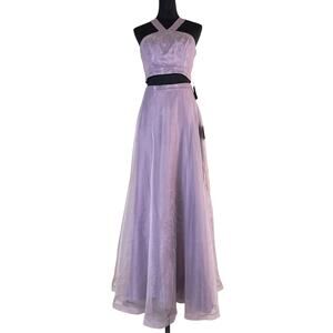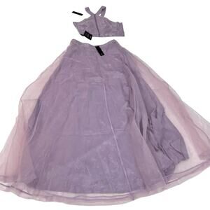 NWT Lulu's 2 Piece Set Ball Gown + Halter Crop Top Lilac Purple Prom Formal Sz M