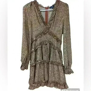 NWT Lulu’s Admire You Orange Floral Print Ruffled Long Sleeve Mini Dress S