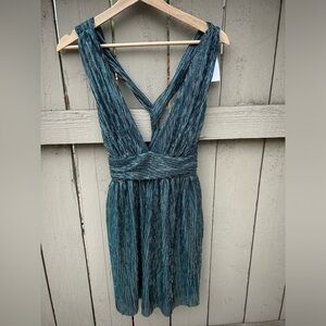 NWT Lulus Ailey Galter Mini Dress Skater Style Twist Back and Teal Size XS.