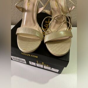 NWT Lulus Aimee Champagne Gold Metallic Lace Up Strappy Heeled Sandals 7