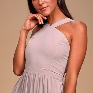 NWT Lulu's Air of Romance Taupe Maxi Dress Size Small
