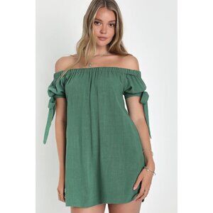 NWT Lulus Al Fresco Evenings Off the Shoulder Green Shift Dress Boho Women's M
