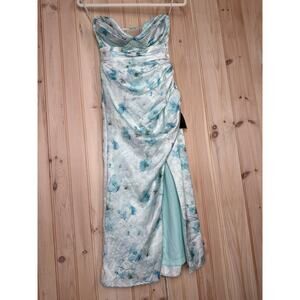 NWT Lulus Alaiya Mint Floral Strapless Lace-Up Midi Dress Banquet Gala Party XS