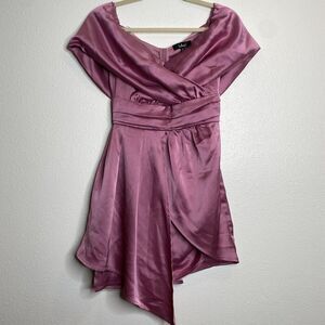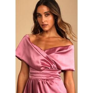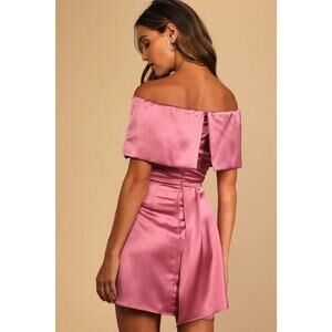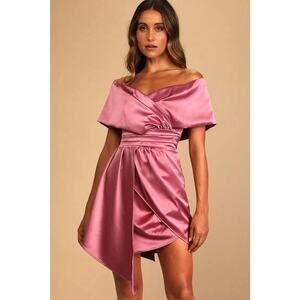 NWT Lulus Always Celebrating Mini Dress XS Mauve Pink Satin Off-the-Shoulder