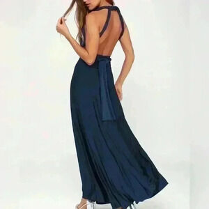 NWT Lulu’s Always Stunning Convertible Navy Blue Maxi Dress