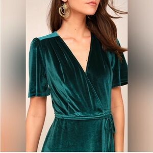 NWT Lulus Amour Teal Green Velvet High Low Wrap Dress