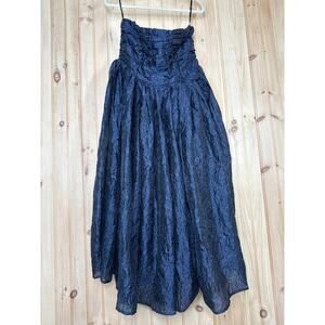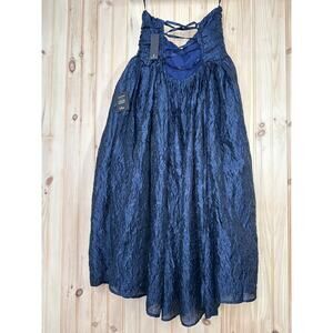 NWT Lulus Analeia Dark Navy Jacquard Lace-Up Strapless Midi Dress Prom Size XL