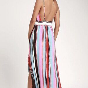 NWT Lulus Andi Pink and Light Blue Multi Stripe Sleeveless Maxi Dress