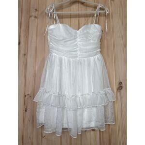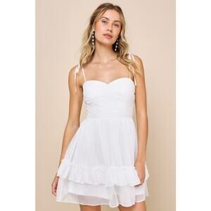 NWT Lulus Angelic Approach White Chiffon Ruffled Tie-Strap Mini Dress Party Sz L