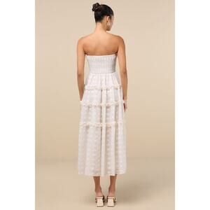 NWT Lulus Beautiful Sentiments Ivory Floral Strapless Tiered Midi Dress Size S