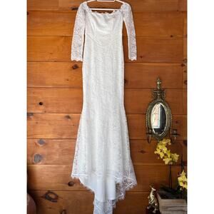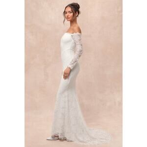 NWT Lulus Beloved Promise White Lace Off Shoulder Mermaid Maxi Dress Bridal XL