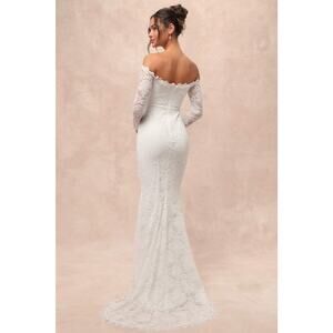 NWT Lulus Beloved Promise White Lace Off-the-Shoulder Mermaid Maxi Dress Bride L