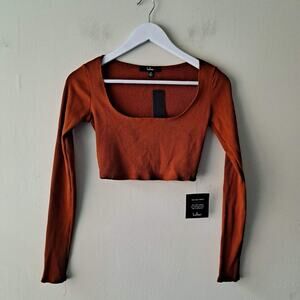 NWT Lulus Best Babe Long Sleeve Crop Top Ribbed Knit Rust Orange Womens Size XS