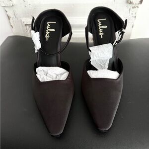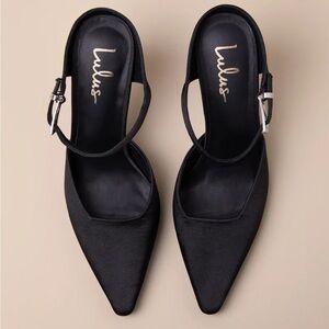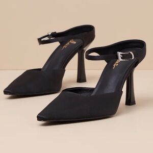 NWT Lulu's Black Satin Heels with Ankle Strap Size 10