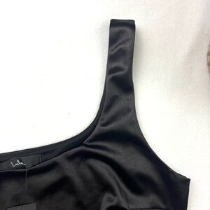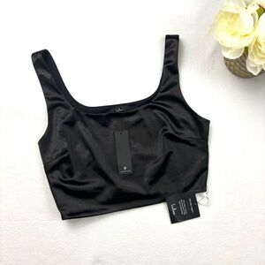 NWT Lulu's Black Satin Square Neck Super Soft Crop Top Bralette (L)