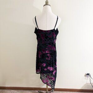NWT Lulus Black/Purple Floral Velvet Burnout Cocktail Dress XL Asymmetrical Hem