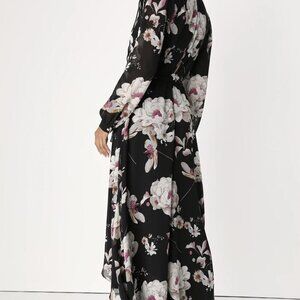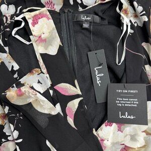 NWT Lulus Blissful Thinking Black Floral Print High-Low Wrap Dress