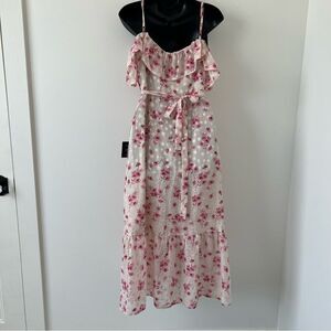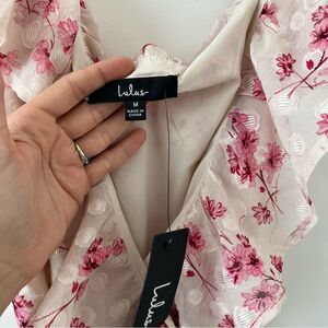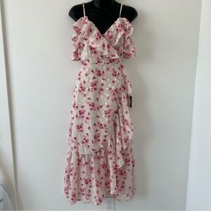 NWT Lulus Bright Weather Blush Floral Jacquard Cold-Shoulder Wrap Dress