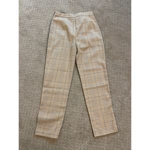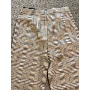 NWT- Lulus Brown & Cream Plaid High Waist Pleat Pants