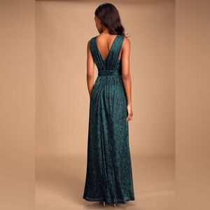 NWT Lulu’s Calipso Black and Teal Metallic Maxi Dress