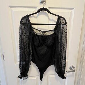 NWT Lulus Call The Dots Black Dotted Mesh Long Sleeve Bodysuit - Size M