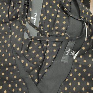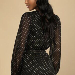NWT Lulus Called For a Toast Black and Gold Dot Long Sleeve Romper (size S)