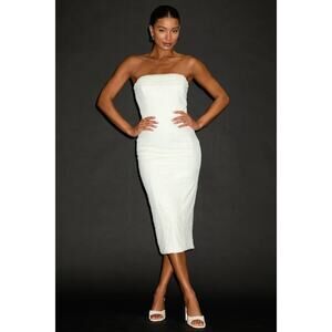 NWT Lulus Catriona White Beaded Cowl Neck Strapless Midi Dress Intricate Glam M