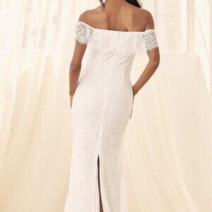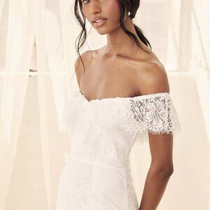 NWT Lulus Cherished Forever White Off-the-Shoulder Lace Maxi Dress