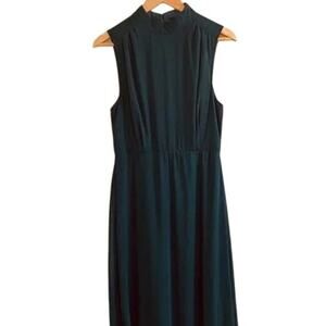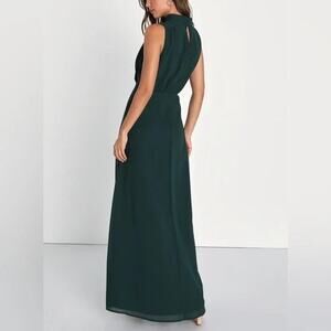 NWT Lulus Chiffon Sleeveless Mock Neck Key Hole Open Back Side Slits Elastic Waist Maxi Gown Dress M Deep Green Style IDL9170