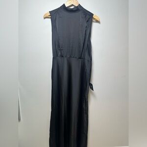 NWT! Lulu's Classic Elegance Black Satin Sleeveless Mock Neck Maxi Dress. large