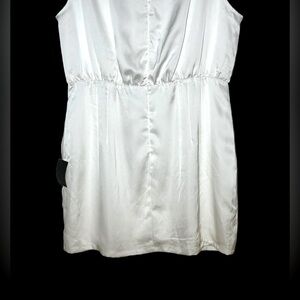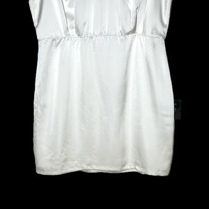 NWT Lulus Classic Elegance White Satin Sleeveless Mock Neck Mini Dress, Size XS