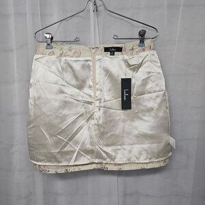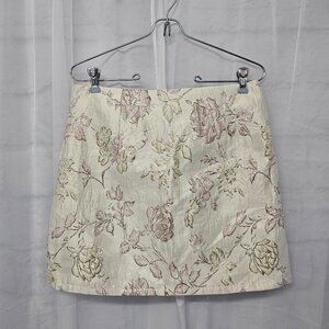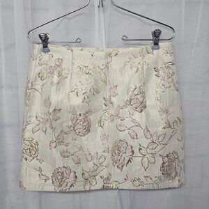NWT Lulus Cream Pink Brocade Floral Mini Skirt Satin Metallic Coquette M