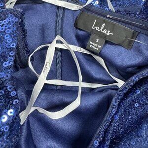 NWT Lulus Dancefloor Diva Blue Sequin Strapless Skort Romper