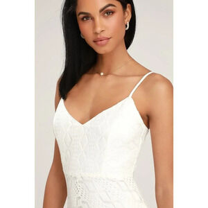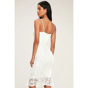 NWT Lulu’s Dancing Slow Cream Lace Ruffled Bodycon Dress Nylon Stretch Size XL