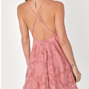 NWT Lulu's Days of Beauty Rose Pink Burnout Floral Skater Dress