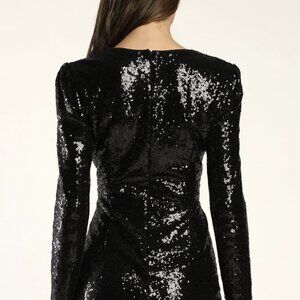 NWT Lulus Dazzling Entrance Black Sequin Long Sleeve Bodycon Mini Dress