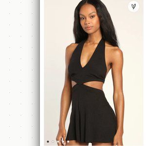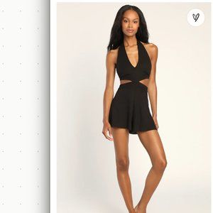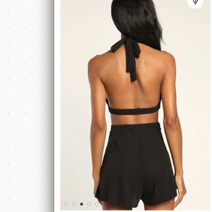 NWT Lulus Delightful Day Off Black Halter Lounge Romper (Size M)