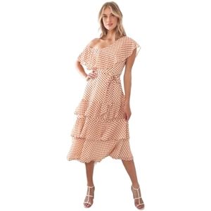 NWT Lulus Doting Dots Cream Polka Dot Tiered One Shoulder Ruffle Midi Dress Size XS