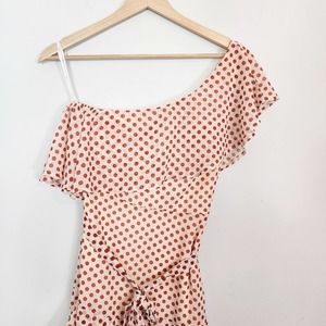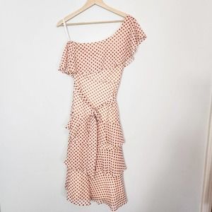 NWT Lulus Doting Dots Cream Polka Dot Tiered One Shoulder Ruffle Midi Dress XS