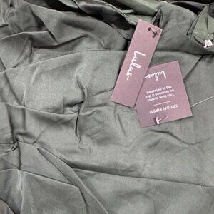 NWT Lulus Dreaming of Elegance Emerald Satin One-Shoulder Maxi Dress