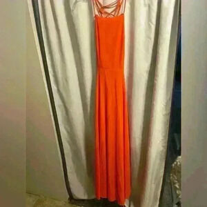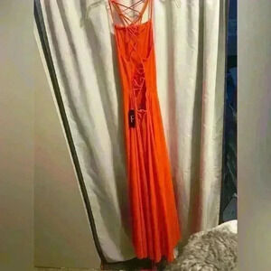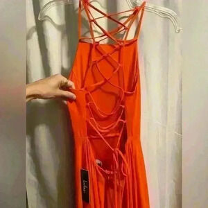 NWT Lulus A-Line Dress, orange color, size small. Dress is lined and back of dress laces up.