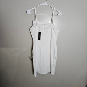 NWT Lulus Drinks On Me White Sleeveless Pleated Bodycon Dress Cocktail Sz L