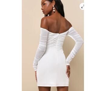 NWT Lulus Elegant Eternity White Mesh Ruched Off The Shoulder Mini Dress Size S