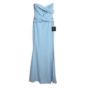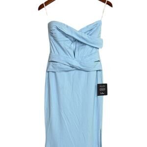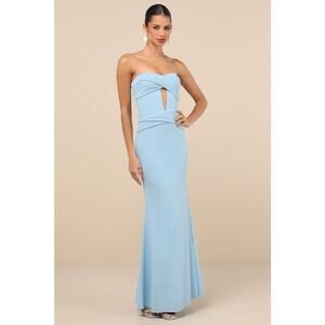 Lulus Elegant Finesse Pleated Cutout Strapless Bodice Stretch Maxi Dress S Light Blue