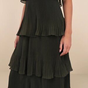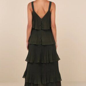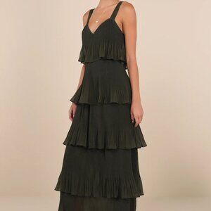 New with tags! Lulu's Elegant Nature Olive Green Pleated Sleeveless Tiered Maxi Dress. Bought for a wedding and didn't wear it, it's never been worn and in perfect condition!