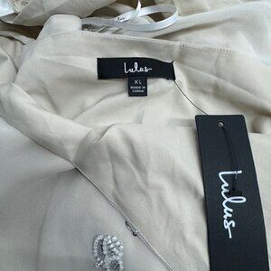 NWT Lulus Elevated Approach Grey Beaded Sequin Floral Shift Mini Dress