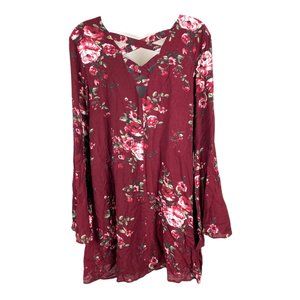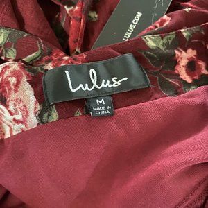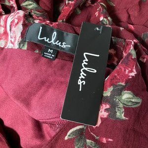 NWT Lulu's Ever Enchanting Floral print mini Dress Bell Sleeves burgundy red