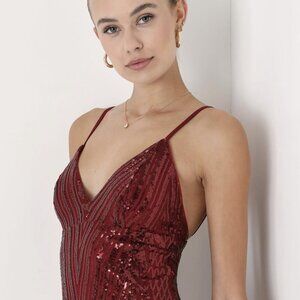 NWT Lulus Ever So Elegant Shiny Burgundy Sequin Mermaid Maxi Dress