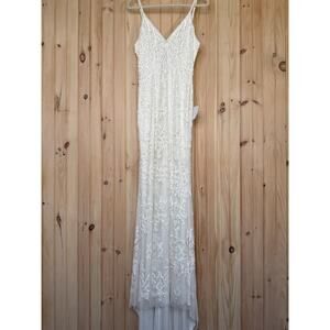 NWT Lulus Everlasting Passion White Sequin Beaded Backless Maxi Dress Bride Sz L