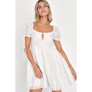 NWT Lulus Exceptionally Angelic White Floral Puff Sleeve Mini Dress Summer Sze M